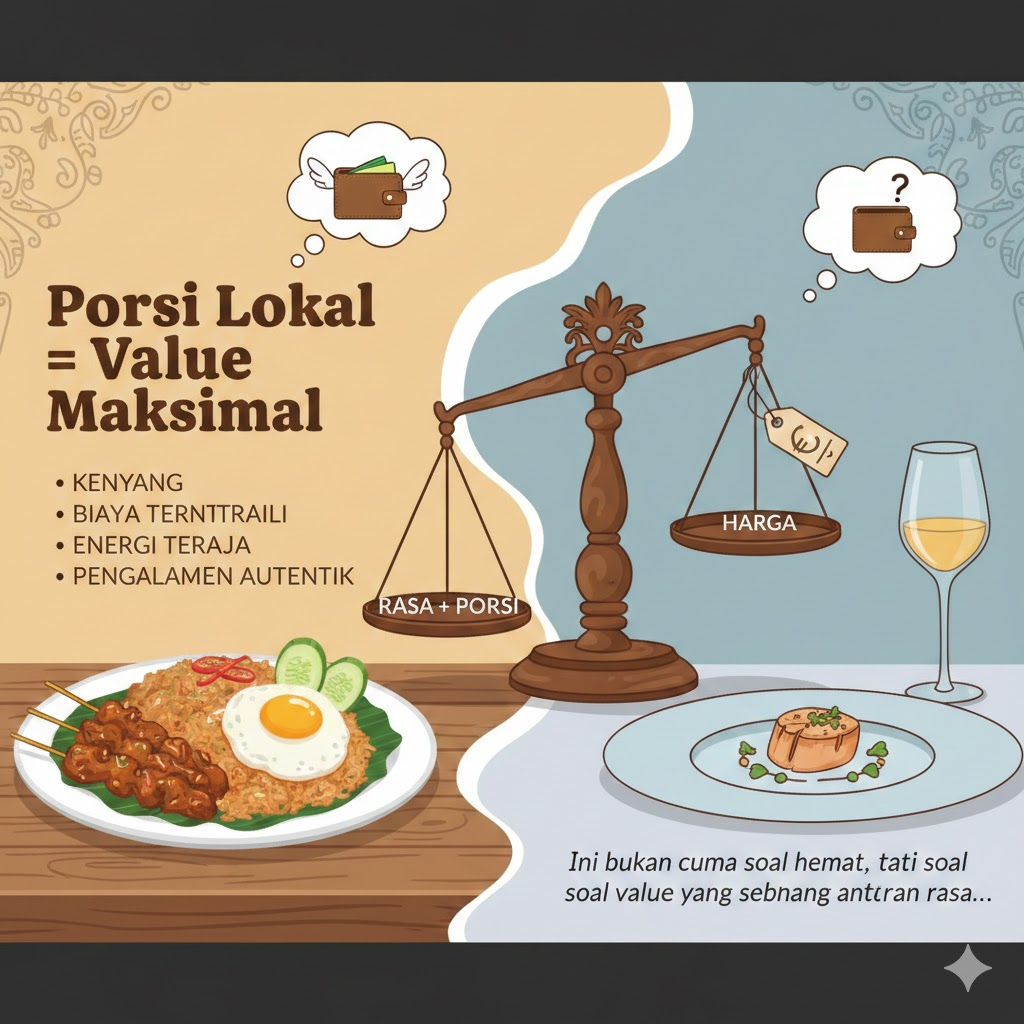 Restoran mahal sering fokus ke tampilan makanan. Kuliner lokal fokus ke rasa. Traveler berpengalaman lebih memilih pengalaman makan yang berkesan daripada sekadar foto cantik.
