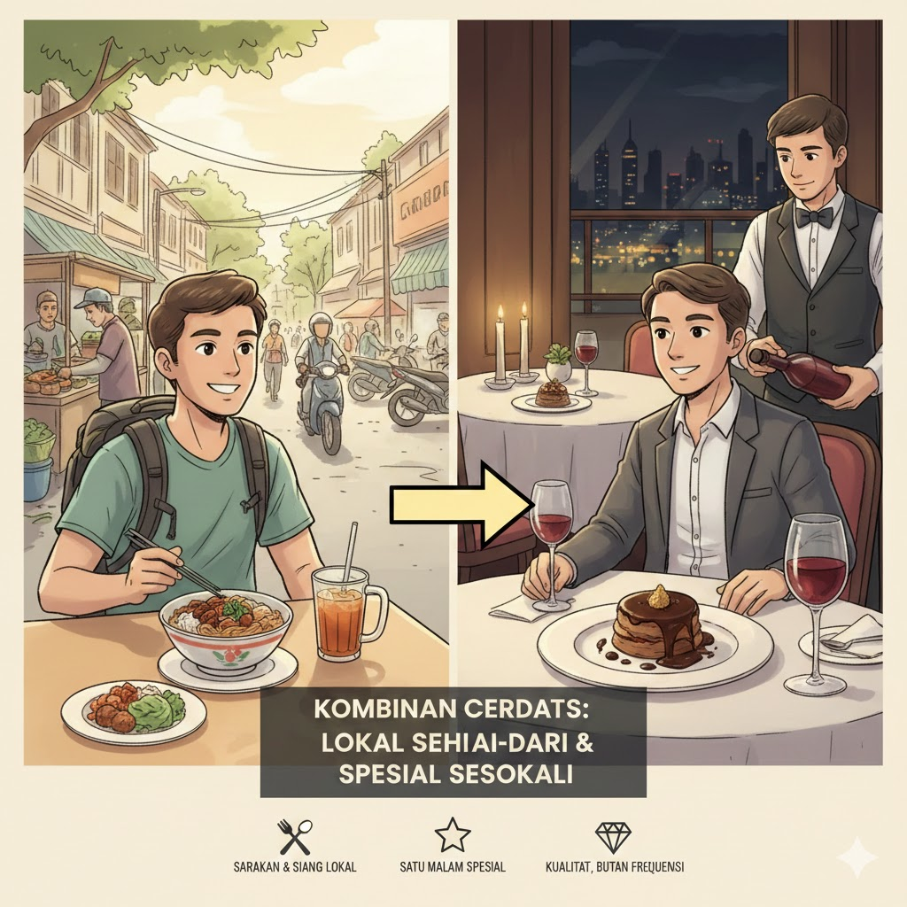 Traveler cerdas nggak anti restoran bagus. Mereka cuma tahu kapan waktu yang tepat. Strategi paling masuk akal adalah kombinasi.