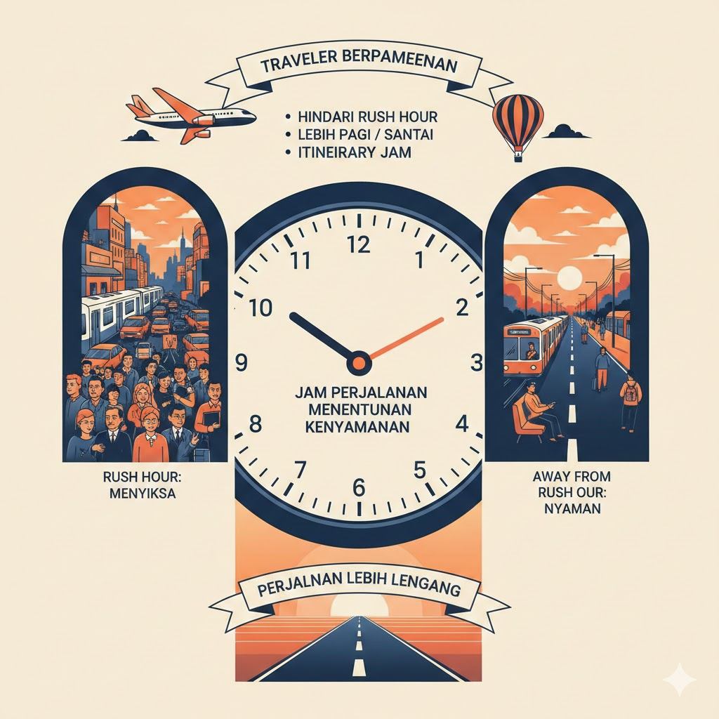 Transport yang sama bisa terasa nyaman atau menyiksa tergantung jam pemakaian. Traveler berpengalaman sangat memperhatikan jam sibuk.